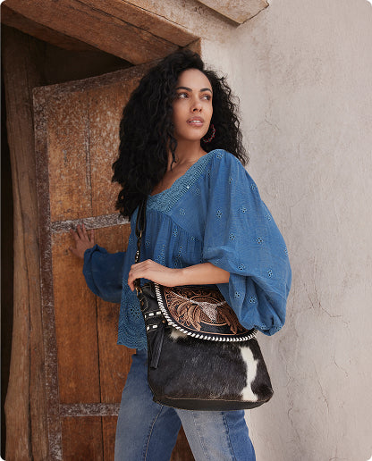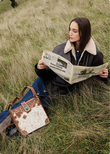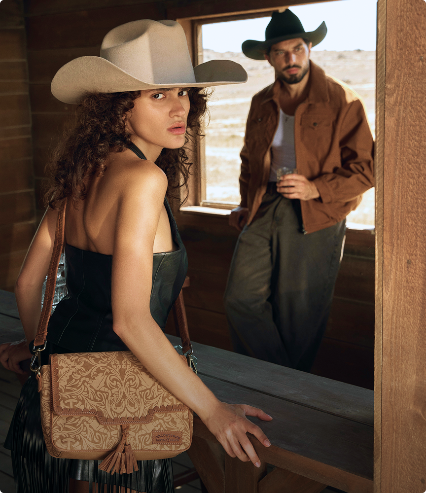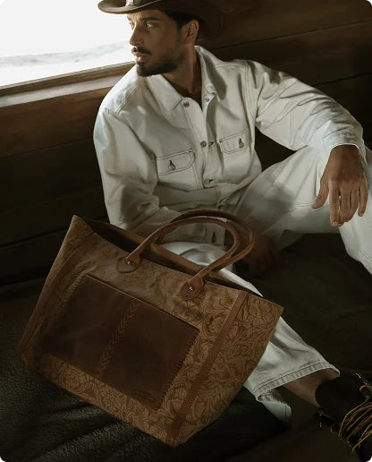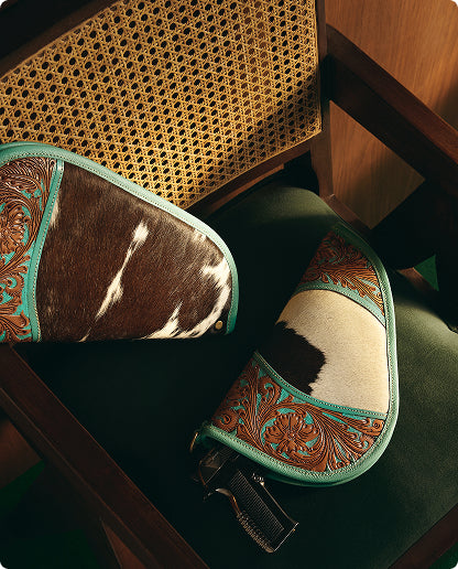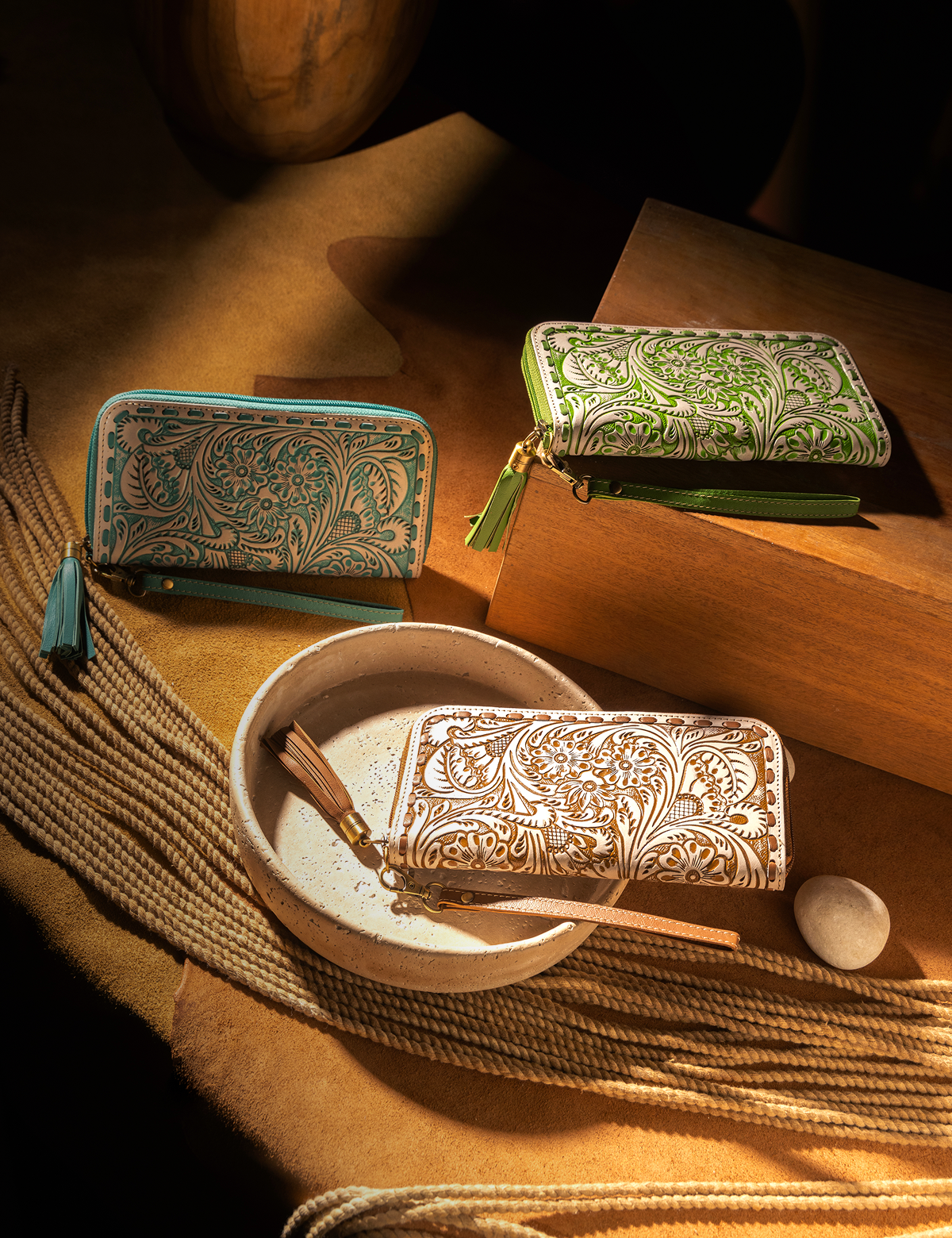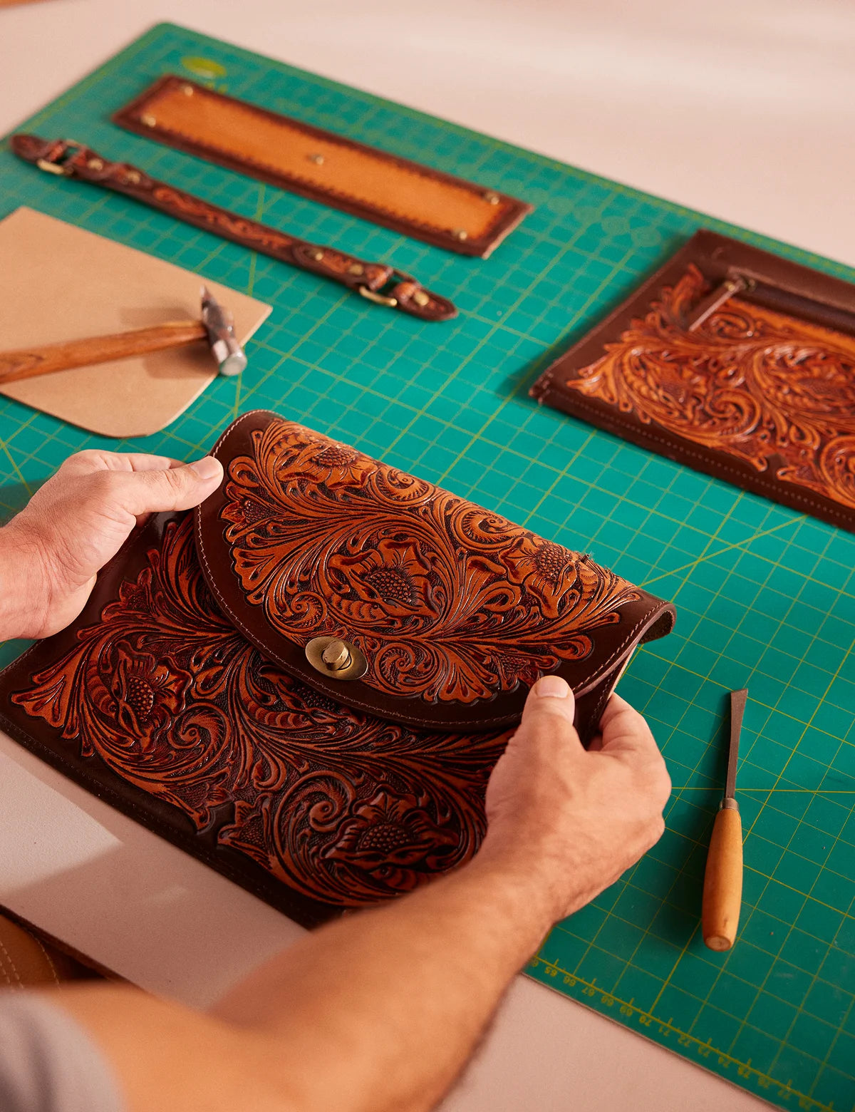 ATELIER WEST BEGINS AT THE MAKER'S TABLE. TRUE TO THE ATELIER SPIRIT, IT REFLECTS INTRICATE TOOLING, DETAILED CRAFTSMANSHIP AND PRECISION. THE ATELIER STORY COMPLETES WITH ZIDANA: A SUSTAINABLE VEG-TANNED LEATHER HONOURING THE LAND AND CARVED AS MODERN KEEPSAKES.