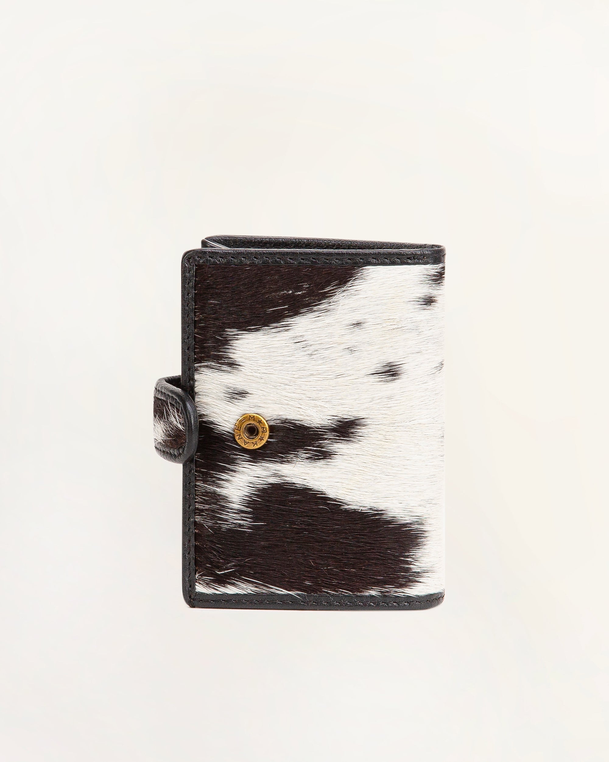 The My Prairie Credit Card Holder combines functionality and rustic charm with its full hair-on leather design. The black and white cowhide adds a bold, sophisticated touch, while the durable hair-on leather ensures long-lasting use. This compact card holder is perfect for organizing your cards in style, offering a practical yet stylish accessory for everyday essentials. Carry your cards with a touch of rugged elegance wherever you go.