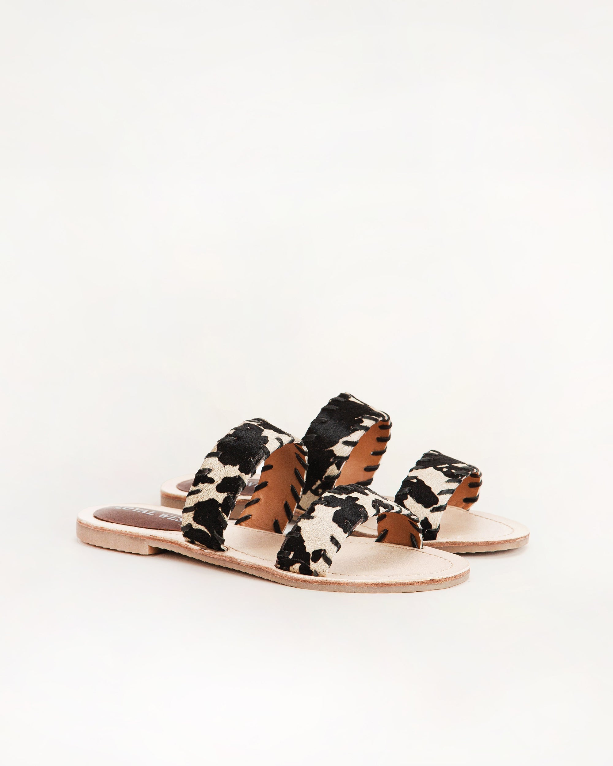 Loyal West Mesa Wanderer Sandals - Black And White Cowhide