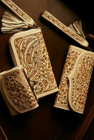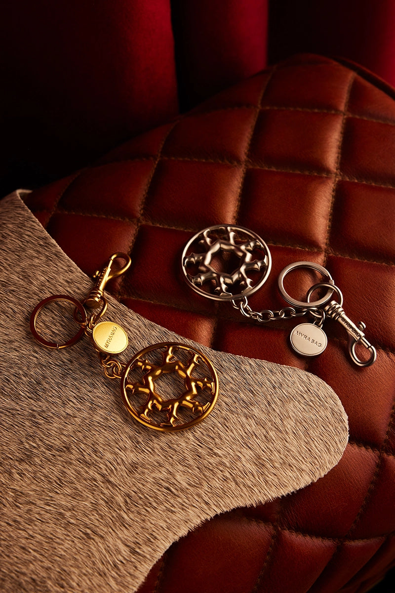 The traditional pattern of this hand-tooled leather key fob is simply classy. Perfect to set your keys apart! Beautifully detailed on honey toned leather.