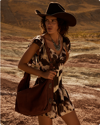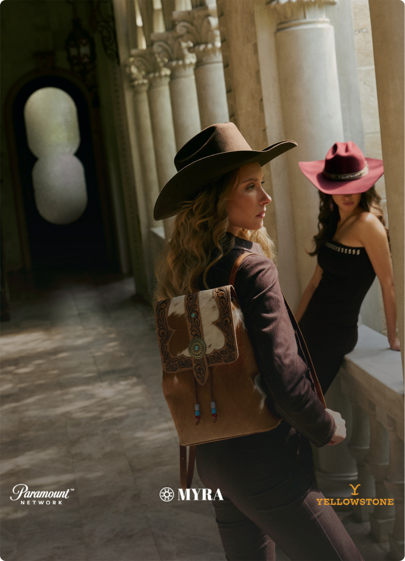 BACK WHERE THE DUST REMEMBERS. RICHER LEATHERS. SHARPER LINES. A COLLECTION THAT COMES IN WITH INTENT. A MYRA X YELLOWSTONE PARTNERSHIP, BUILT ON THE SAME WILD GROUND.